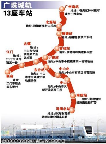 广珠城轨1月7日开通运营 最贵票价44元一张